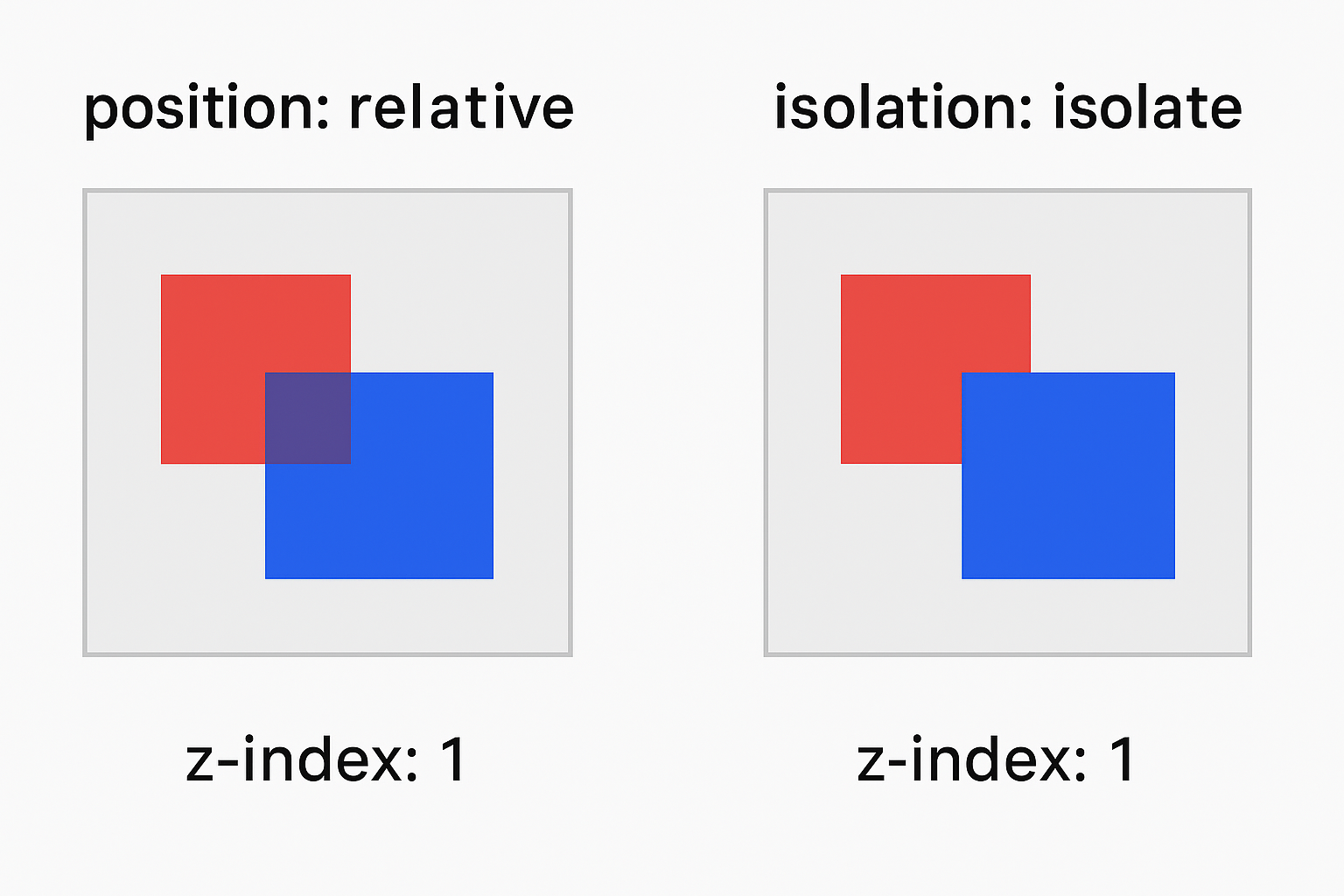 If your goal is not only to create a stacking context, but also to optimize performance, and you want to suggest to the browser to create a new compositing layer, it is better to use will-change: transform or will-change: opacity. These are more explicit “hints” for the browser that have fewer side semantic effects than isolation.